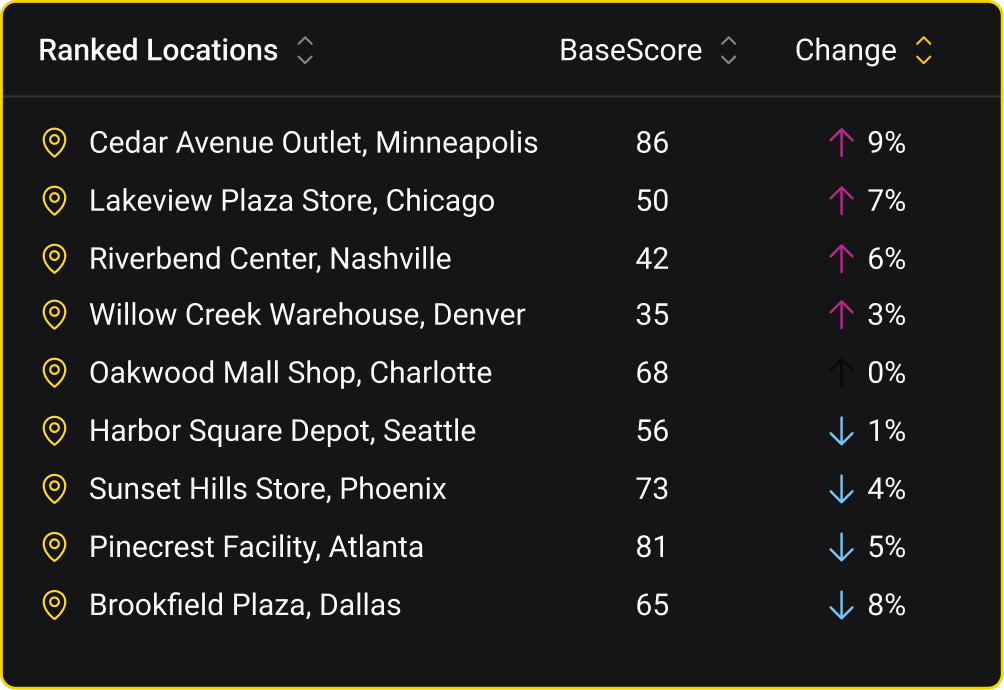 Track BaseScore threat trends across your entire location footprint. Automate monitoring to identify emerging threats and plan ahead.