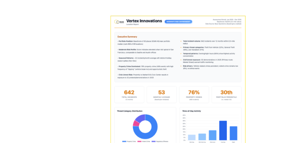 Analysts produce your reports using Base Operations street-level intelligence and BaseScore analytics.