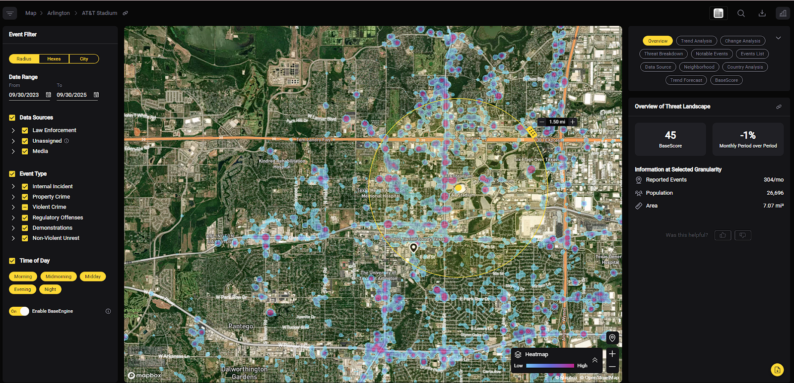 Base Operations. AT&T Stadium 1.5-mile radius BaseScore data. Assessment Period: September 30, 2023 September 30, 2025. (Accessed November 2025)