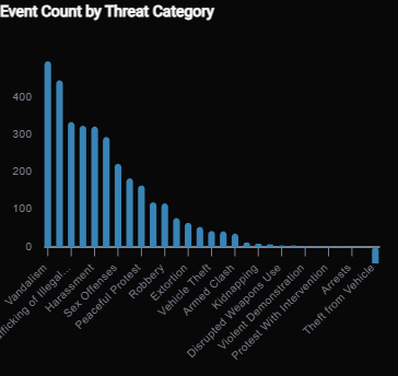 Geographic Focus: While the Transit Hub has a lower BaseScore (24), this reflects density, not safety. The lack of incident data in the immediate station vicinity should not be interpreted as a safe corridor, particularly given the confirmed presence of armed clashes in the data set.