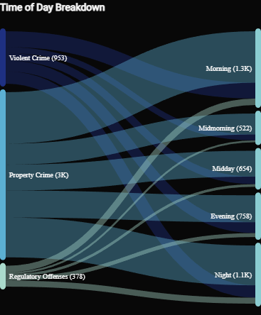 Time-of-Day: Morning hours (06:00-12:00) experienced the highest concentration of property crime (935 events), though matches occur during lower-risk afternoon periods.